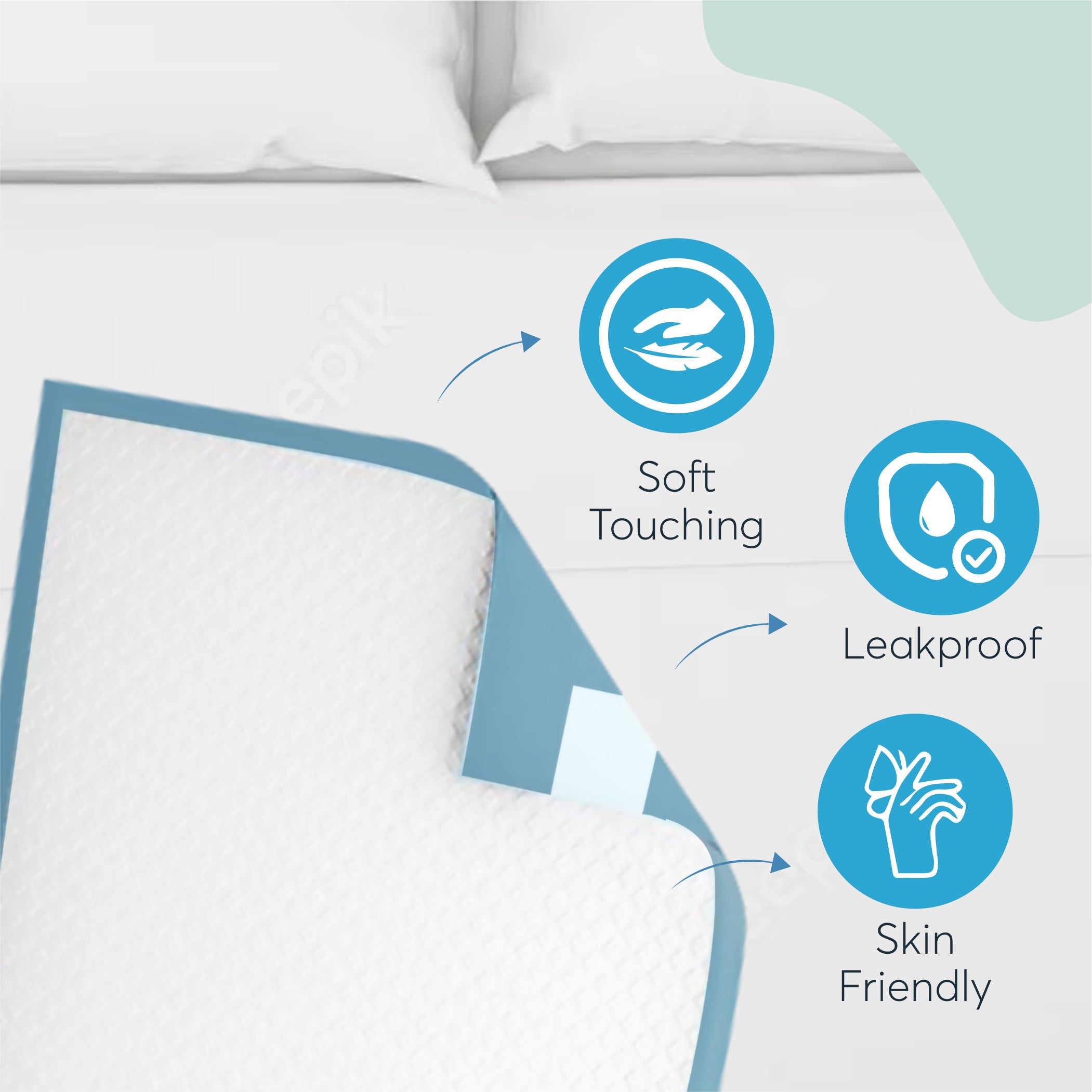 DISPOSABLE & HYGIENIC: Disposable pads are designed to be more hygienic and easier to use. Each pad, once used, needs to be disposed thus minimizing the clean-up. This keeps all furniture clean and fresh. Bed pads consist of a soft top layer with 100% waterproof backing, making them highly reliable and effective.