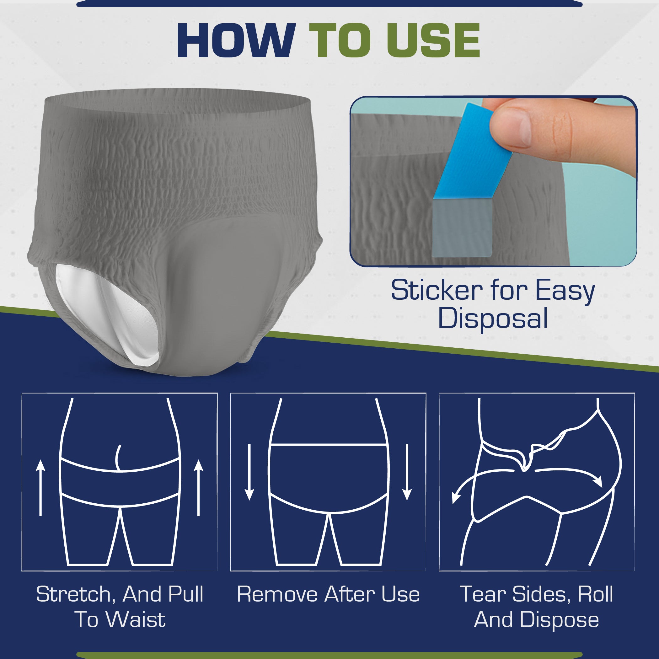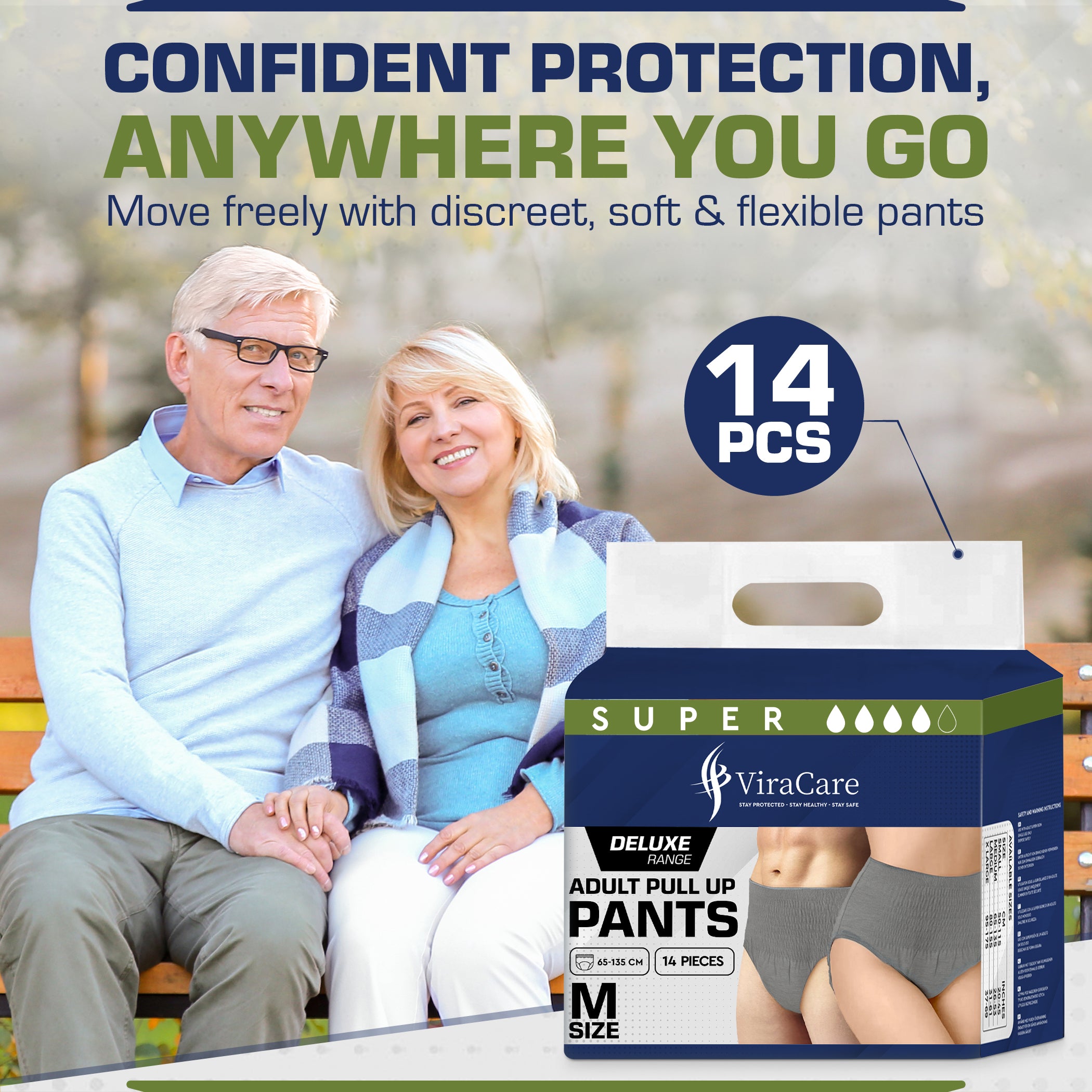 SOFT & BREATHABLE: ViraCare adult diapers are made with a soft cotton topsheet and breathable materials that keep the skin cool and dry. ViraCare adult incontinence pull up pants feature a full-rise soft-stretch waistband for a snug, flexible fit, ensuring lasting comfort day and night. Ideal for active lifestyles, they provide freedom of movement without compromising protection.