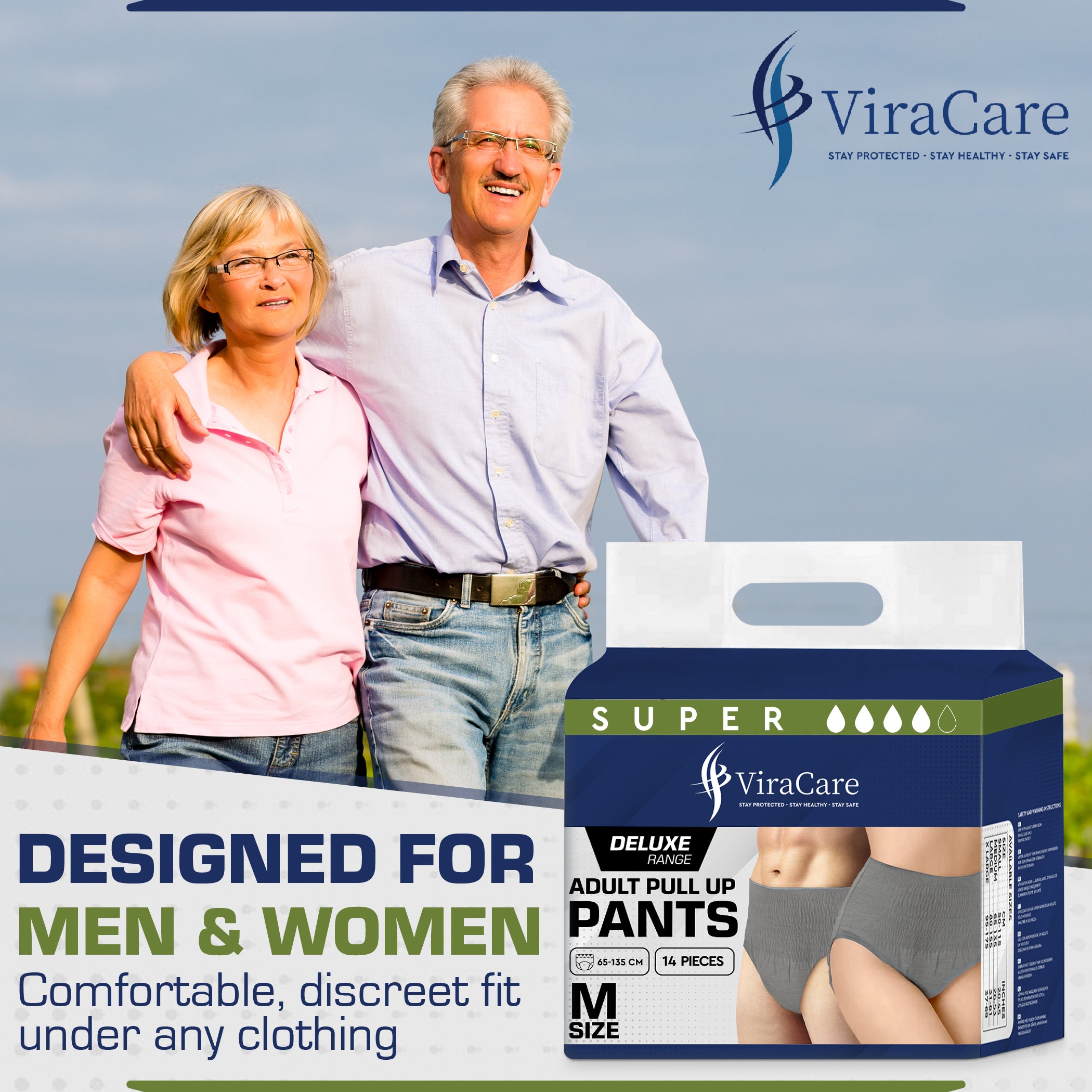 SKIN HEALTHY AND DISCREET: ViraCare mens and women incontinence pants are thoughtfully designed with skin health as a priority. They feature breathable, hypoallergenic components that help reduce the risk of skin irritation or discomfort. These adult nappies for women come with stretchable waistbands, allowing for quick, hassle-free changes while maintaining discreetness under clothing.