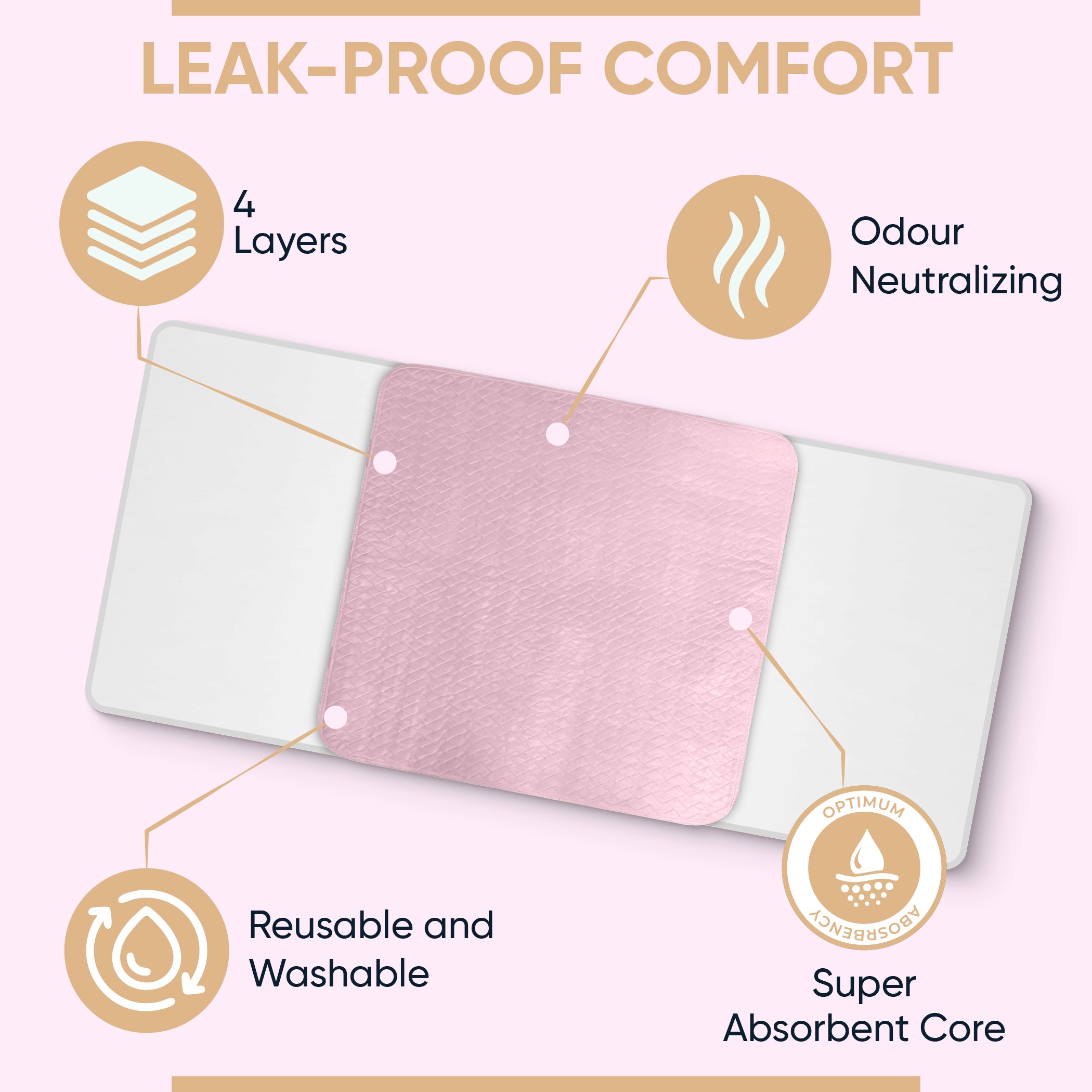 MAXIMUM ABSORBENCY WITH LEAK LOCK TECHNOLOGY: ViraCare washable bed pads are designed with a high-absorbency multi 4 layers core. Each pad can quickly absorb moisture, preventing leaks and odours from reaching your furniture. These bed wetting mats are ideal for overnight use and provide long-lasting dryness and peace of mind for both users and caregivers.