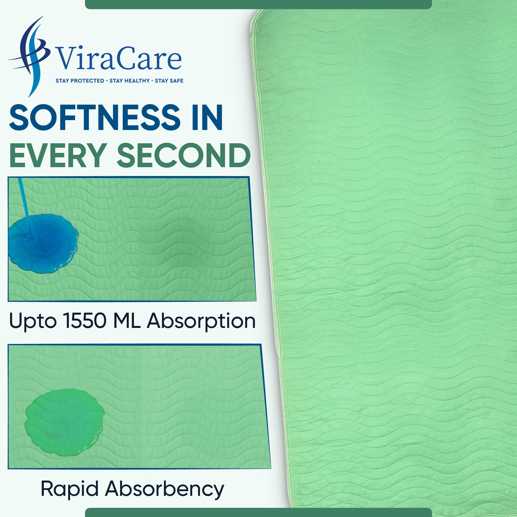 SOFT, SKIN-FRIENDLY COMFORT FOR SENSITIVE SKIN: ViraCare bed protectors for incontinence feature a quilted, breathable top layer which feel soft against the skin and reduce the risk of irritation or discomfort. They are suitable for those with sensitive skin or prolonged bed use. Enjoy a restful night’s sleep with materials that promote comfort, airflow, and skin health.
