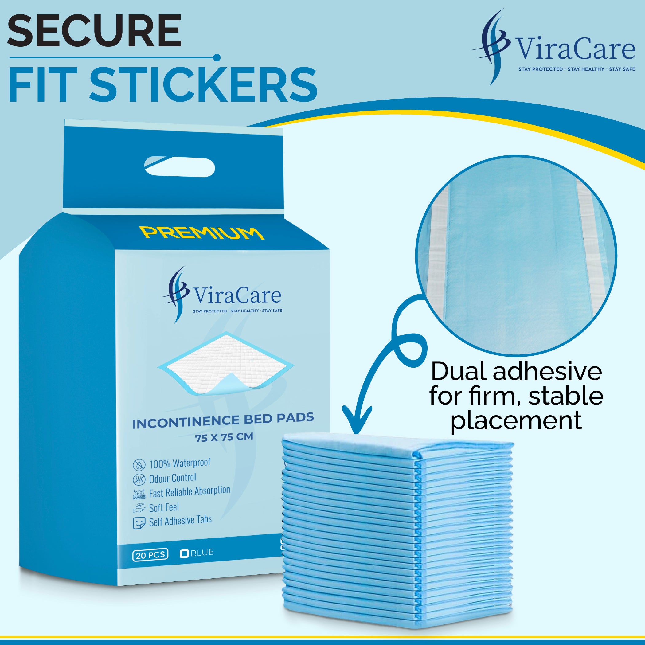 STRONG SELF-ADHESIVE DESIGN: ViraCare incontinence bed pads comes with dual self-adhesive that hold it firmly in place, preventing any movement during use. The strong yet gentle adhesive ensures a secure fit on any surface, offering stability and comfort. It is easy to apply and remove, leaving no residue behind for a clean and hassle-free experience.